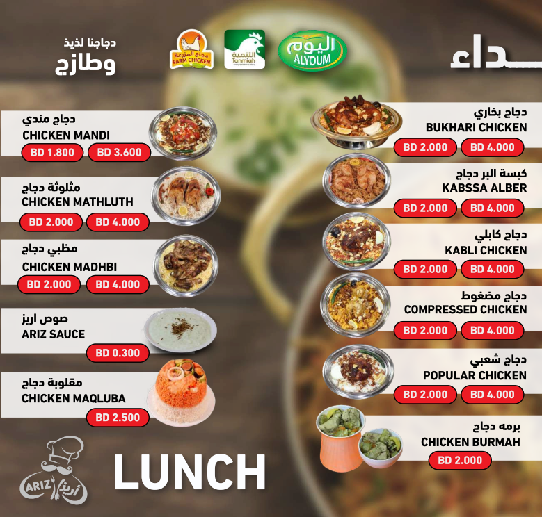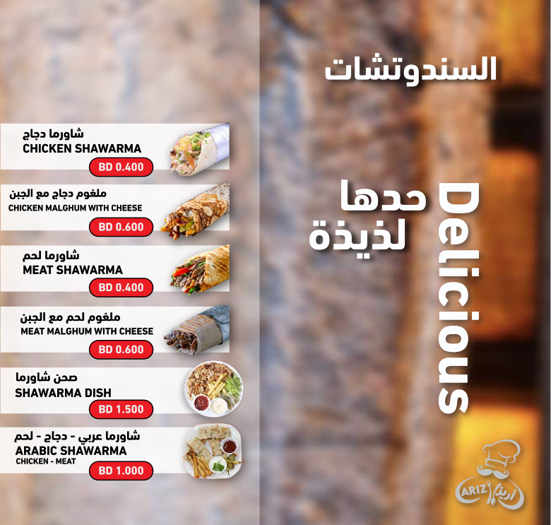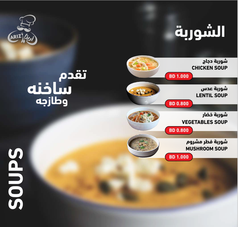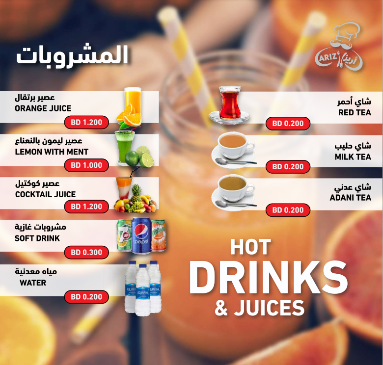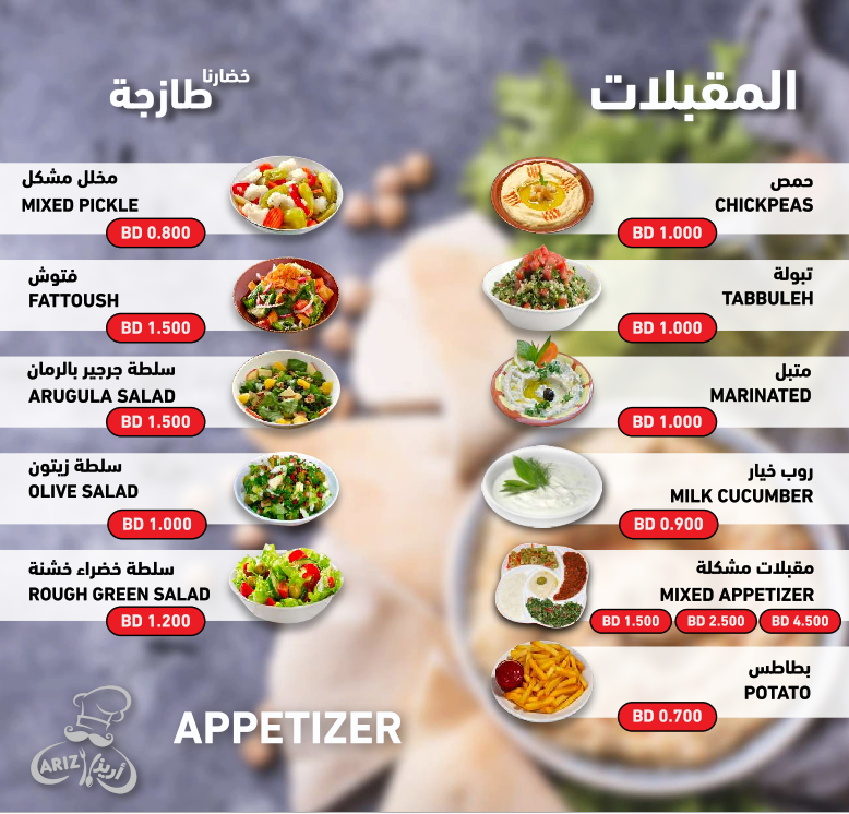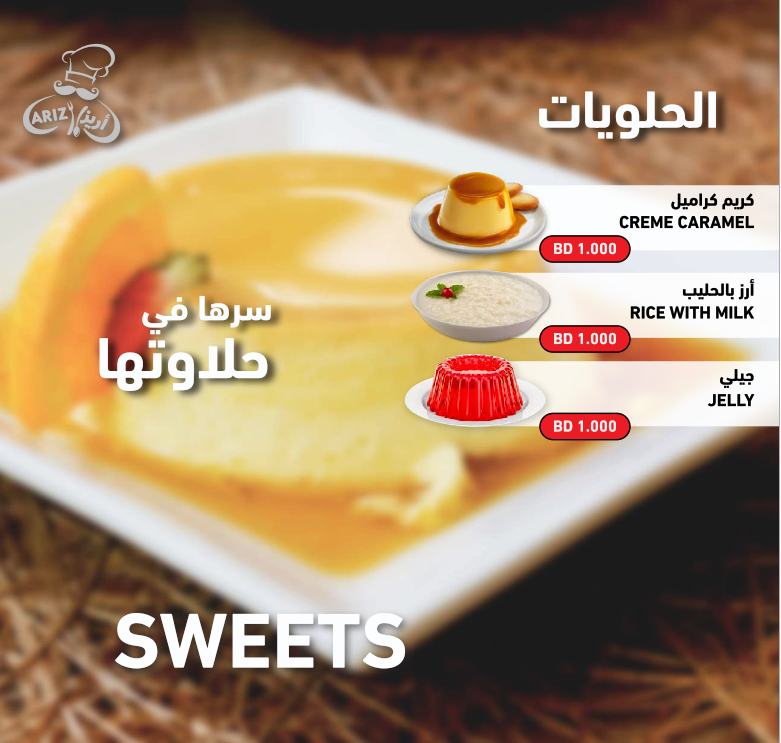 تمتاز مطاعم أريز بتنوع خياراتها ولذّةِ وصفاتها، من المأكولات البديعةِ اللذيذة إلى الأطباق العربية الشهيّة، سيجد متذوقها ما يرضي ذائقته ويناسب ميزانيته.